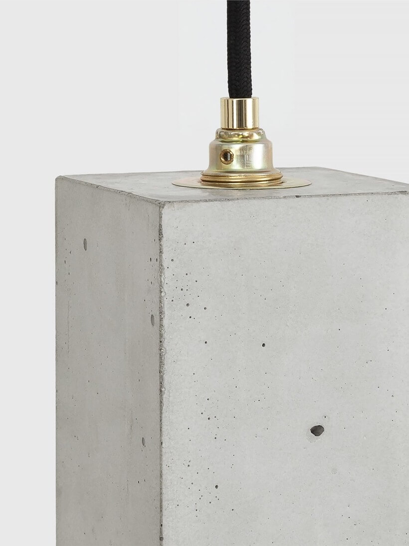 Mit einer Kantenlänge von 23 x 10 x 10 cm eignet sich die Lampe sowohl einzeln als “Hingucker”, aber auch um sie in Reihe über einem Esstisch, einer langen Tafel, einem Sideboard, einem Tresen, einer Bar oder frei im Raum in Szene zu setzen. Auf Grund ihres minimalistischen Designs und den kontrastreichen Materialien: Beton und Gold, Silber oder Kupfer lässt sich die Designerlampe mit jedem Einrichtungsstil kombinieren.