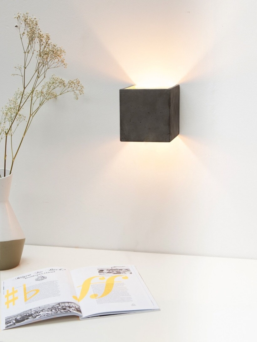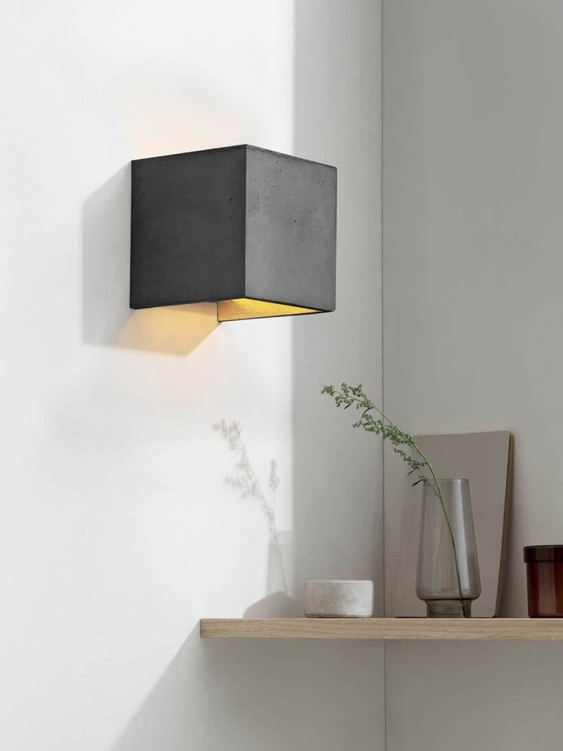 Mit einer Kantenlänge von 14 x 14 x 14 cm eignet sich die Lampe sowohl einzeln als “Hingucker”, aber auch um sie in Reihe in einem langen Gang, Flur oder einer Bar in Szene zu setzen. Auf Grund ihres minimalistischen Designs und den kontrastreichen Materialien, Beton und Gold, lässt sich die Designerlampe mit jedem Einrichtungsstil kombinieren.
