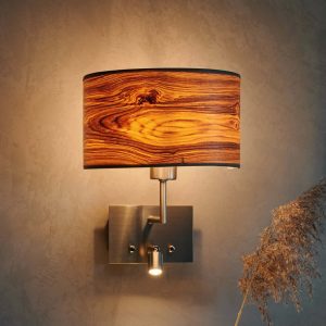 Die Cortexa Wandleuchte bietet stimmungsvolles Licht und ein flexibles LED-Leselicht. Ein Unikat aus nachhaltigen Materialien, das Wohnräume mit Naturflair und Komfort bereichert.