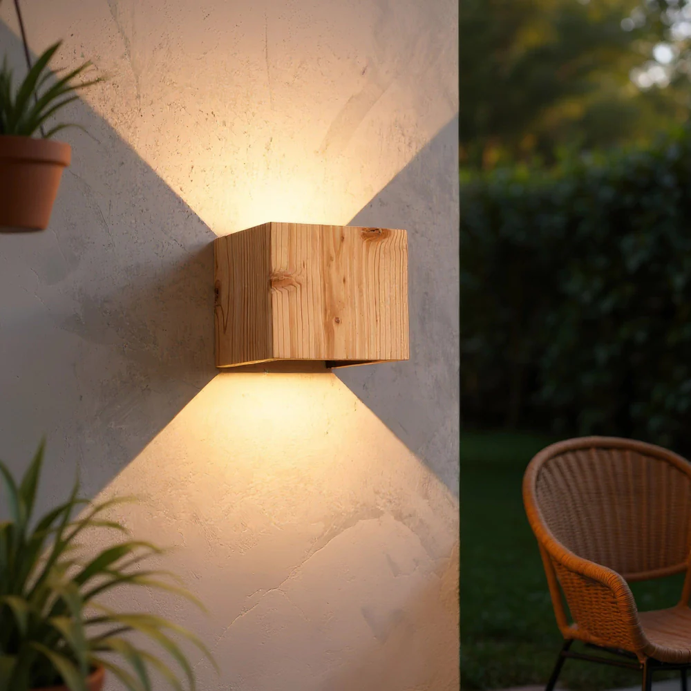 Mit der Cubus Wandleuchte bringen Sie minimalistische Eleganz und funktionales Design an Ihre Wände. Dieser kompakte Holzwürfel, präzise gefertigt, strahlt sein Licht sowohl nach oben als auch nach unten in einer einstellbaren Kegelform aus. Die sanften Lichtstrahlen erzeugen eine stimmungsvolle Atmosphäre und betonen zugleich die klaren Linien und die natürliche Schönheit des Holzes. Die Cubus ist mehr als nur eine Lichtquelle; sie ist ein Statement von moderner Ästhetik und handwerklicher Präzision, das sich perfekt in jeden Raum einfügt.