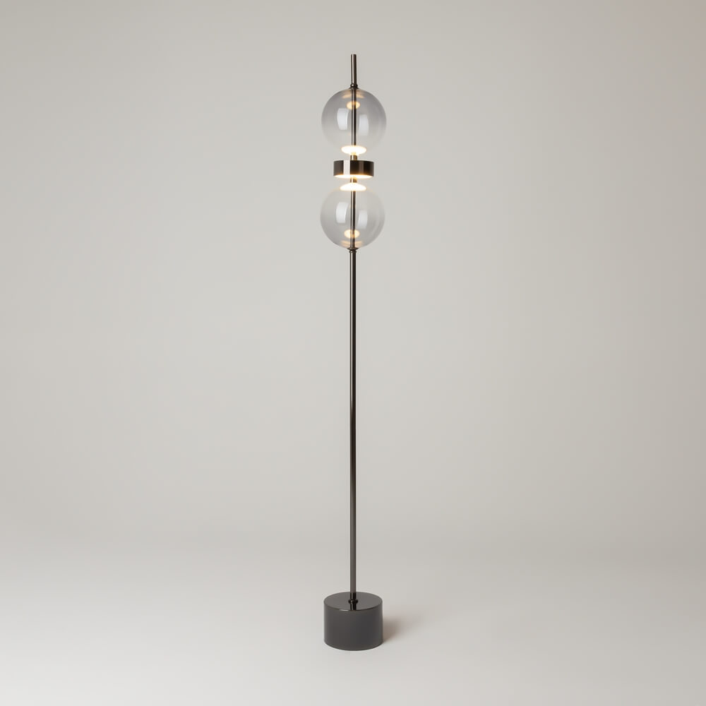 Die Double Moon Stehleuchte von Maytoni beeindruckt durch ihr dekoratives Design mit zwei kugeligen Glasleuchten, die wie schwebende Monde in deinem Raum wirken. Die klaren Glaskörper erzeugen ein warmes, weiches Licht, das eine einladende, gemütliche Atmosphäre schafft – ideal für Wohnzimmer, Leseecke oder Lounge-Bereich. Durch die harmonische Kombination aus transparentem Glas und mattschwarzen Akzenten fügt sich die Leuchte elegant in moderne Einrichtungskonzepte ein, ohne aufdringlich zu wirken. Eine wunderbare Wahl für alle, die Moderne Beleuchtung & Designlampen mit skulpturalem Charakter und wohnlicher Ausstrahlung lieben.
