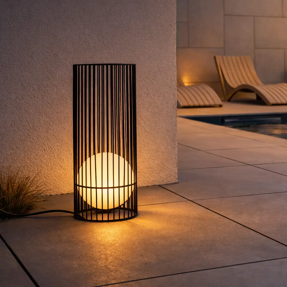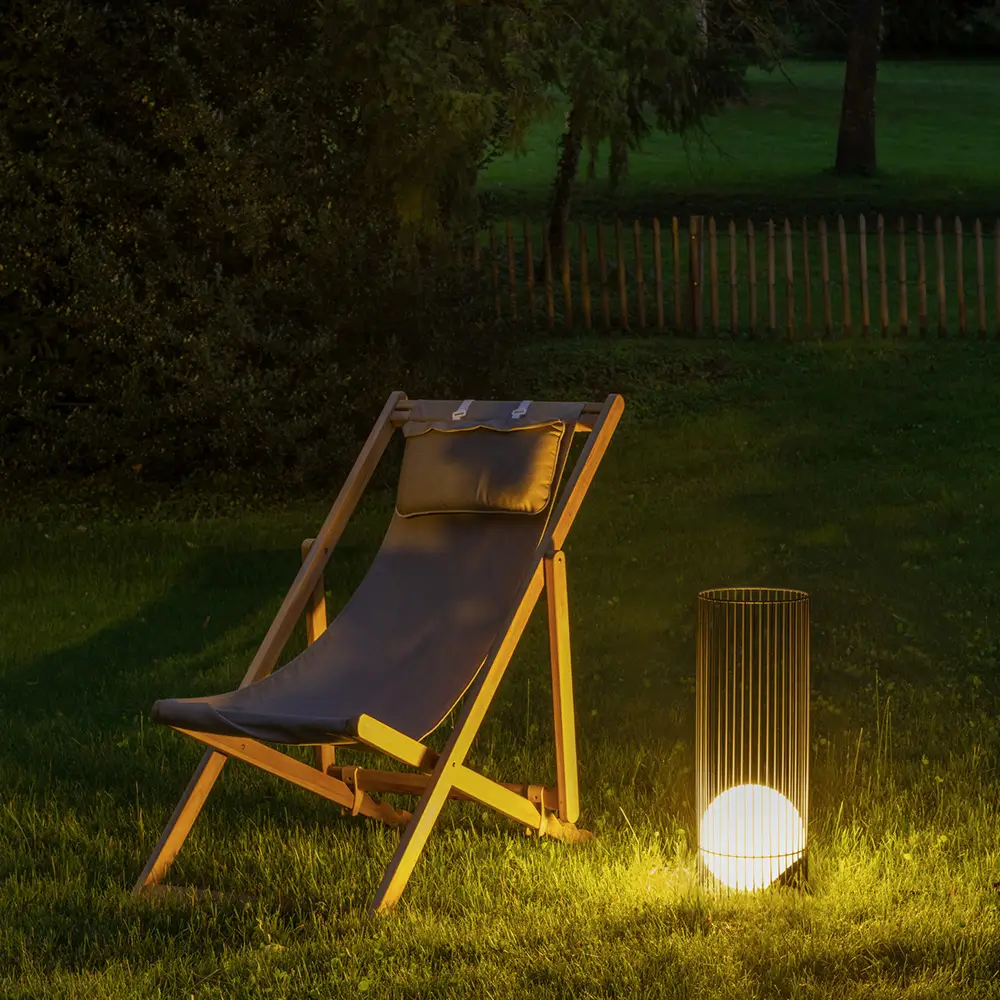 Die GRID SUN Outdoor-Stehleuchte vereint ein reduziertes, ruhiges Design mit einer faszinierenden Lichtwirkung. Die kugelförmige, milchige Lichtquelle scheint fast schwerelos inmitten der zylindrisch angeordneten Rattanstäbe zu schweben. Diese Kombination aus Stahl und Rattan-Optik verleiht modernen Outdoor-Lounges, Terrassen oder privaten Gärten eine Atmosphäre von Leichtigkeit und architektonischer Klarheit. Dank des mobilen Konzepts und des mitgelieferten 24V-Steckertrafos lässt sich die Leuchte flexibel platzieren und sorgt mit ihrem warmweißen Licht (2700 K) für ein stimmungsvolles Ambiente im Freien.
