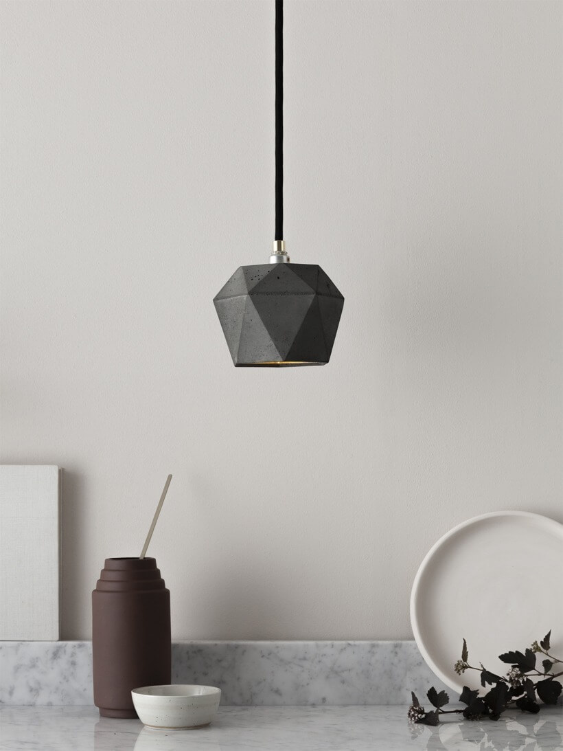 Mit einer Kantenlänge von 12 x 12 x 10 cm eignet sich die Lampe sowohl einzeln als “Hingucker”, aber auch um sie in Reihe über einem Esstisch, einer langen Tafel, einem Sideboard, einem Tresen, einer Bar oder frei im Raum in Szene zu setzen. Auf Grund ihres minimalistischen Designs und den kontrastreichen Materialien, Beton und Gold, lässt sich die Designerlampe mit jedem Einrichtungsstil kombinieren.